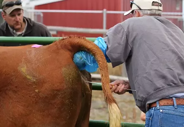 Artificial insemination (AI) is a method of breeding cattle using frozen straws of semen. In order for the process to be successful it must be done at the proper time of a cow’s heat cycle. In the past this required observing cows for heat in order to breed at the appropriate time. However, the most common method of AI today uses a synchronization protocol to bring the majority of the herd into heat at the same time so they can be bred using timed AI. Improvements in synchronization techniques has made artificial insemination a much more feasible option for today’s cattle producers.